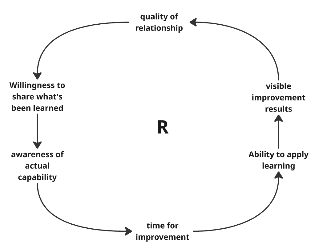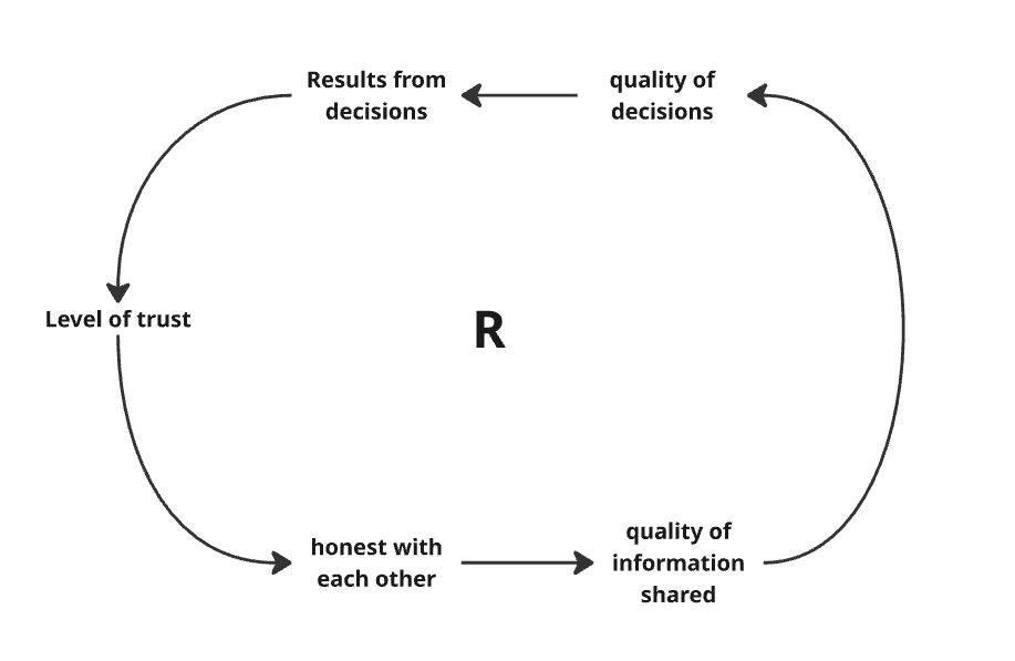 Imagine in the quality of relationship loop changing the condition of the variable “quality of relationship” to down and walk the loop. What story are we telling now? Which story matches your current context?